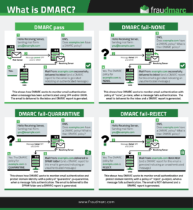 - Reject– allows companies to completely lock down their domains against spoofed emails. Spoofed emails are not delivered, and the company knows about the attempt through DMARC reports.
