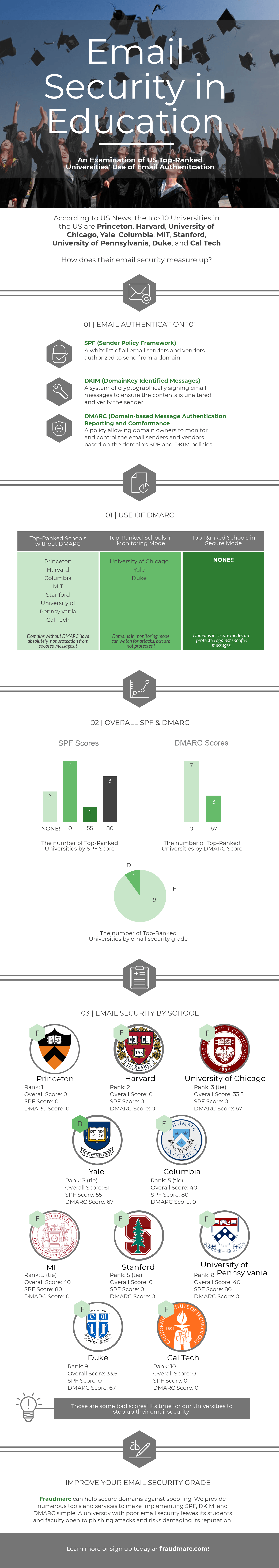 There is a way to prevent spoofed messages before it reaches the inbox- DMARC! How many of our top universities are using email authentication to protect their students and faculty from spoofed messages? We took a look…